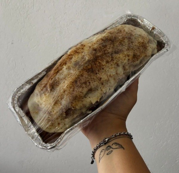 Budín Carrot Cake de aprox. 650 g, húmedo y lleno de sabor, elaborado con harina de avena y de almendras, endulzado con azúcar mascabo y nueces. Coronado con una suave cobertura de chocolate blanco y queso crema que lo hace irresistible. 🥕🤍🍰
